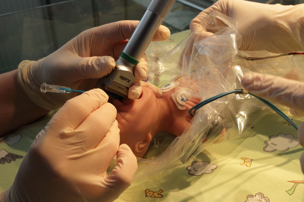 Vastsündinute osakonna töötajad harjutasid raviprotseduuri erakordselt enneaegse vastsündinu simulaatoril
